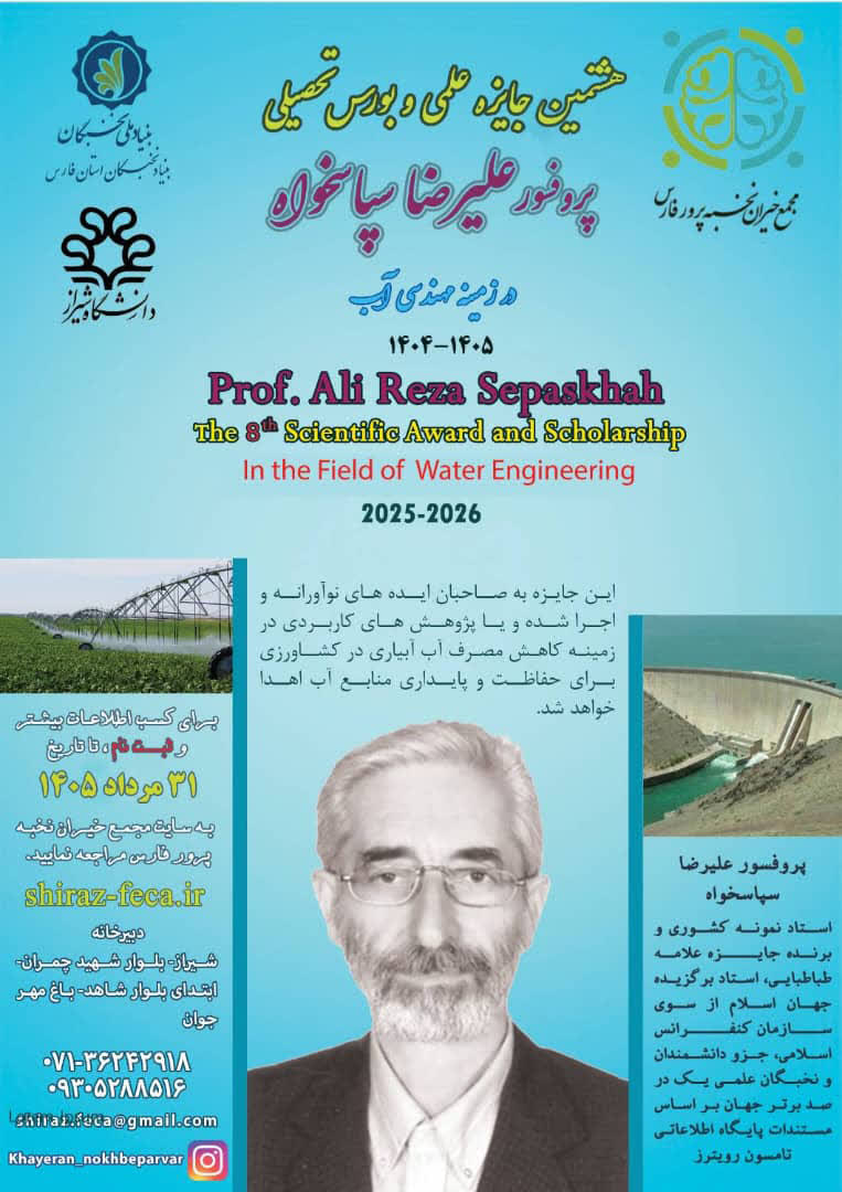 در این راستا مجمع خیران نخبه پرور فارس اقدام به اعطای پنجمین جایزه علمی و همچنین بورس تحصیلی پروفسور علیرضا سپاسخواه در زمینه مهندسی آب نموده است و طی این فراخوان از واجدین شرایط برای ثبت نام در این جایزه علمی دعوت به‌عمل می‌آورد. این جایزه به صاحبان ایده های نوآورانه و اجرا شده و یا پژوهش های کاربردی در زمینه کاهش مصرف آب آبیاری در کشاورزی، حفاظت و یا پایداری منابع آب اهدا خواهد شد.