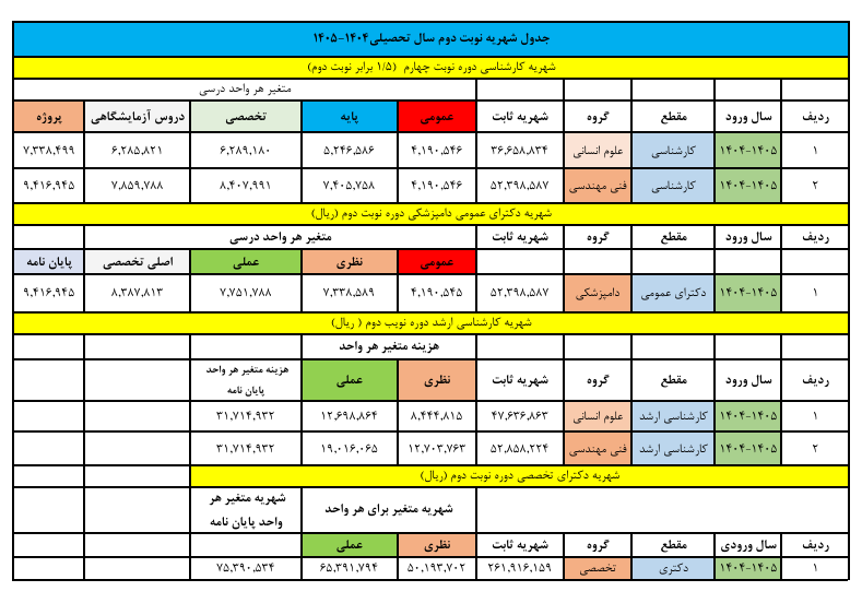 شهریه دانشجویان دانشکده آموزش های الکترونیکی دانشگاه شیراز سال تحصیلی 1405-1404