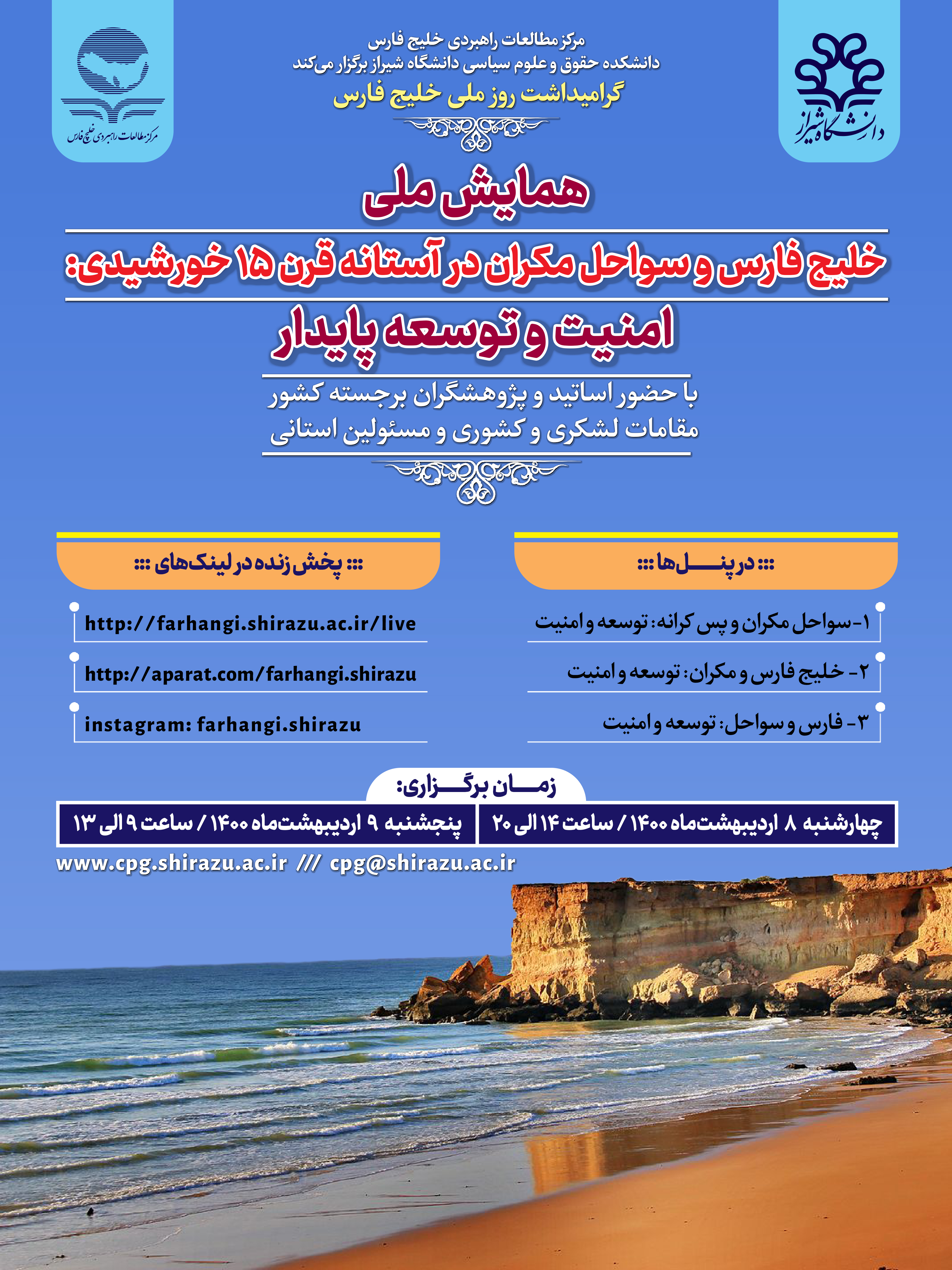 همایش ملی «خلیج فارس و سواحل مکران در آستانه‌ی قرن پانزدهم خورشیدی امنیت و توسعه پایدار» در دانشگاه شیراز برگزار می‌شود.