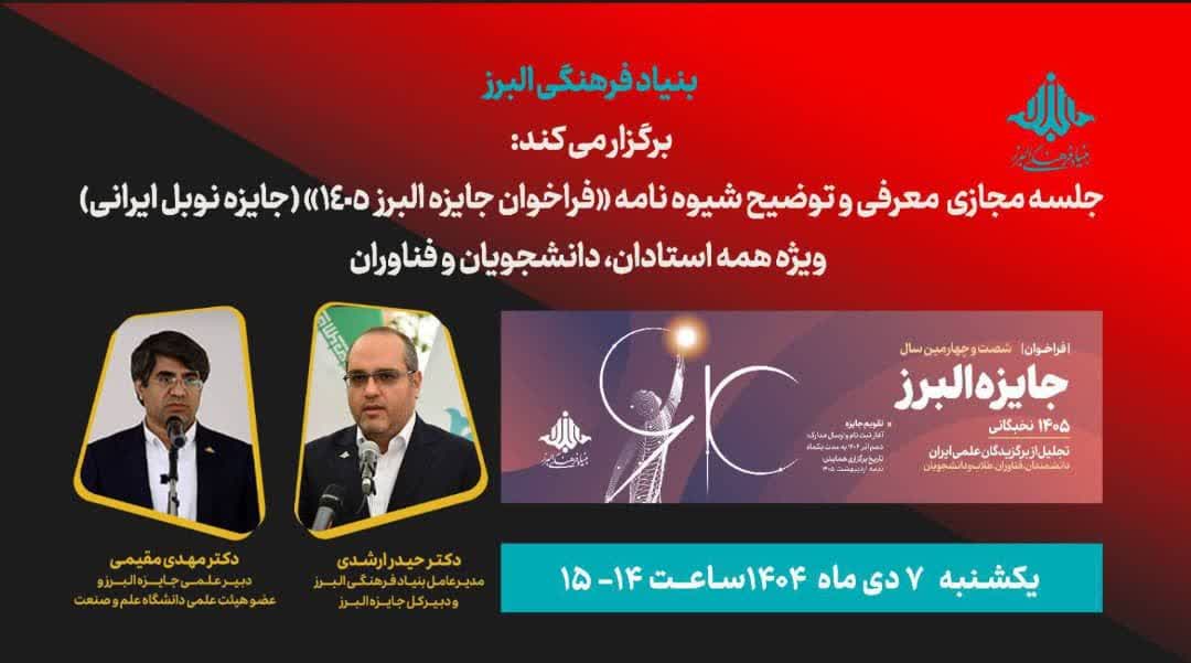 [لینک شرکت در وبینار](https://evand.com/events/توضیح-و-تفسیر-جایزه-البرز-1405-7087)