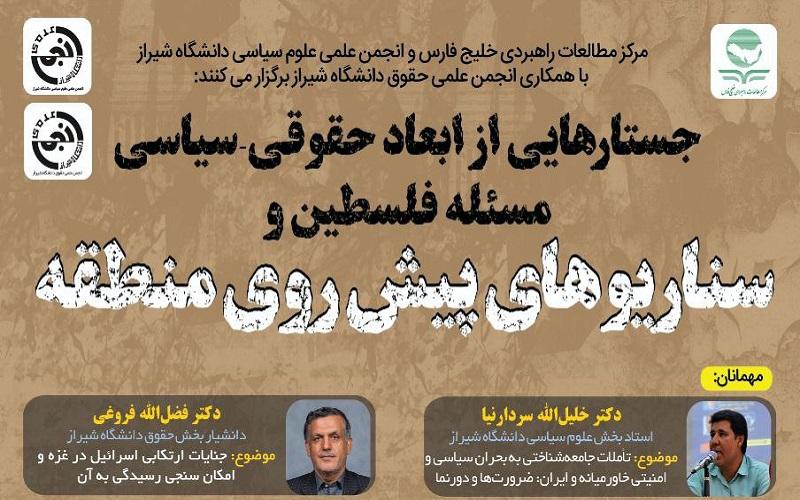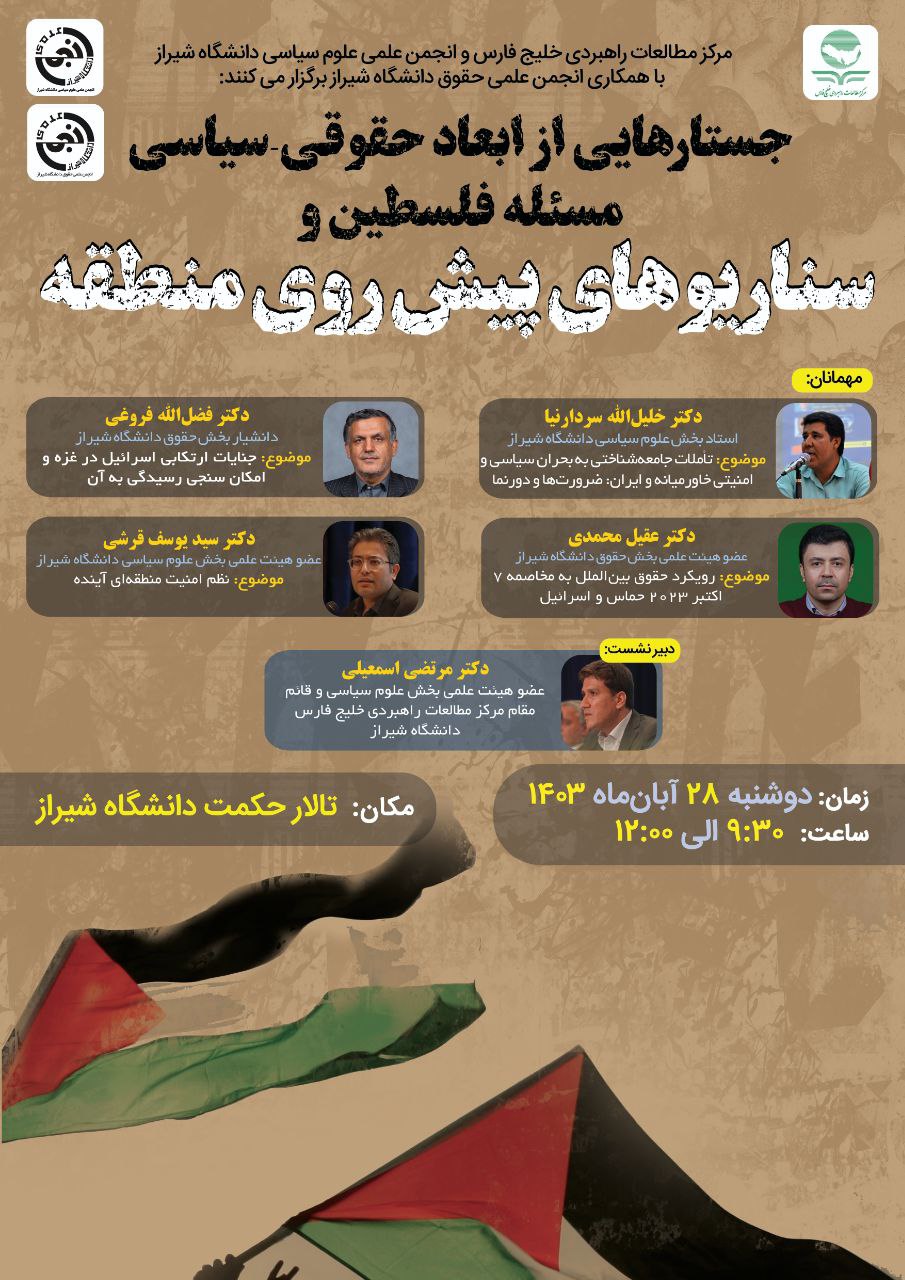 مرکز مطالعات راهبردی خلیج فارس و انجمن علمی علوم سیاسی دانشگاه شیراز با همکاری انجمن علمی حقوق دانشگاه شیراز برگزار می‌کنند: