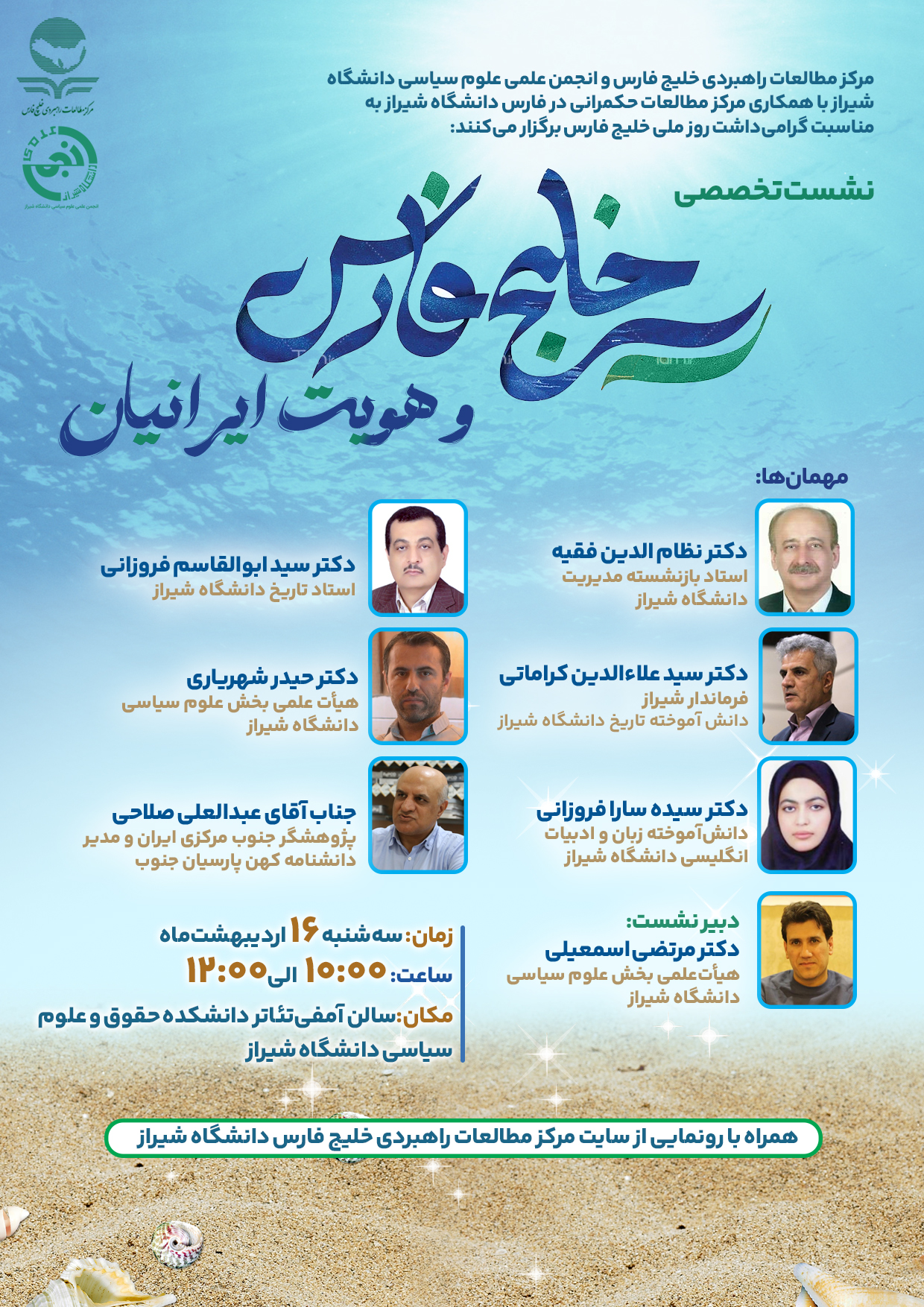 مرکز مطالعات راهبردی خلیج فارس و انجمن علمی علوم سیاسی دانشگاه شیراز با همکاری مرکز مطالعات حکمرانی در فارس دانشگاه شیراز برگزار می‌کنند:
