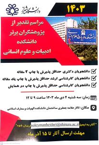 کسب مقام دوم کنگره جهانی شعر مقاومت ازسوی عضو هیأتعلمی بخش زبان و ادبیات فارسی